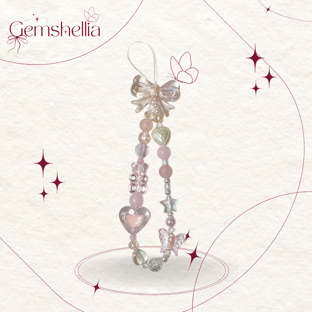 Dây đeo điện thoại pink butterfly ribbon trái tim handmade Gemshellia được lấy cảm hứng từ sự ngọt ngào, dịu dàng và lãng mạn của những gam màu hồng pastel. tổng thể thiết kế mang phong cách nữ tính, mềm mại, kết hợp các chi tiết quen thuộc như nơ, bướm và trái tim, tạo nên cảm giác nhẹ nhàng nhưng vẫn đủ nổi bật khi gắn trên điện thoại.