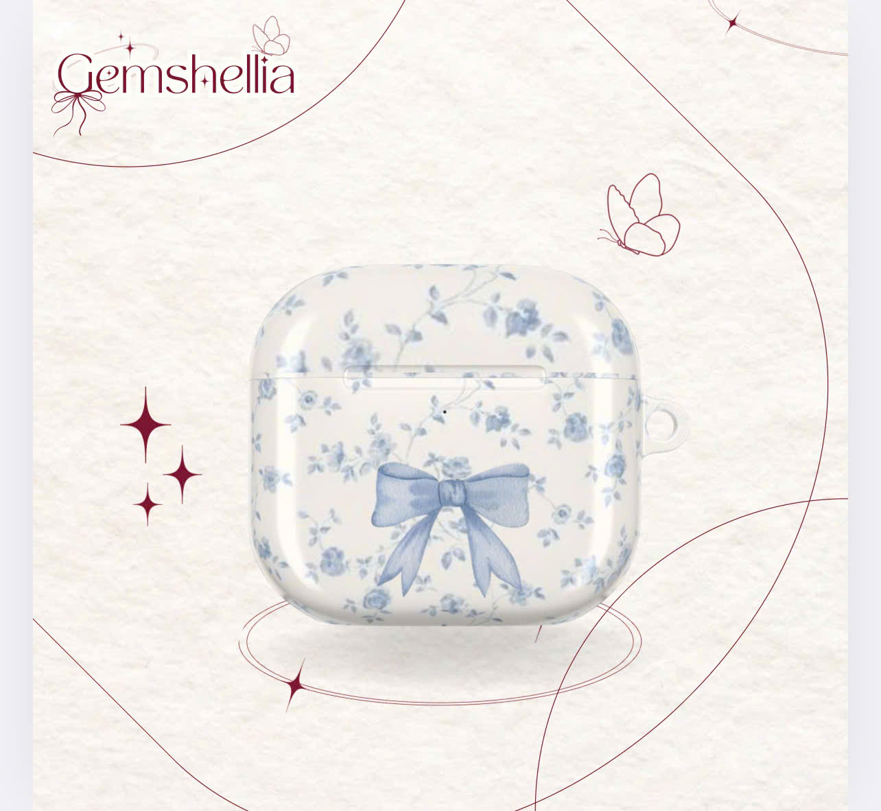 Ốp AirPods Blue Floral – Hoa Xanh Vintage